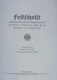 Festschrift zur Denkmalsweihe und Regimentsappell des ehem. 2. Kurhess. Inf. Rgts Nr. 82, Göttingen