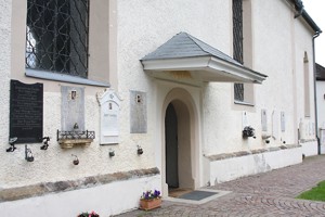 2) Weitere Gedenktafeln an der Kirchenmauer;