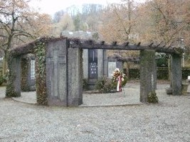eingefügt sind. Oben aufgesetzt, ein Eisernes Kreuz. Darum ist ein Kreis aus Steinpfeilern mit