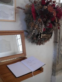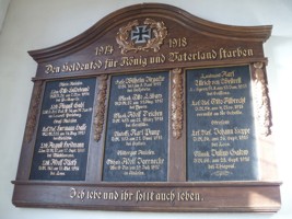 Für die Gefallenen des 2. Weltkriegs ist in der Kirche eine Gedenk Ecke eingerichtet mit Ehrenkranz und
