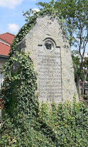 Monolith mit Widmung und den Namen der Gefallenen. Standort im Vorgarten des Hauses Bahnhofstraße 13.