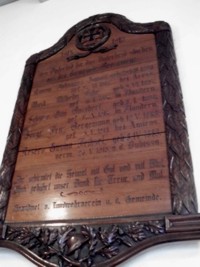 Gedenktafel 1. Weltkrieg und Gedenkblatt 2. Weltkrieg in der Kirche