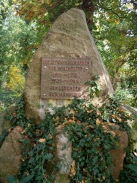 Auf dem Findling der Denkmalsanlage stand früher eine Widmung für die Gefallenen des 1. Weltkriegs.