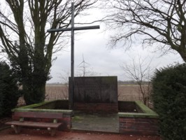 Das Denkmal steht abseits der Bundesstraße B 58 im Südwesten von Büderich in Nähe des Wegekreuzes „Im Kolk“ - „Winkeling“. Seit dem 20. April 1945 bis zum 15. Juni 1945 lebten in diesem auf blankem Acker abgesteckten Kriegsgefangenenlager zwischen 77.000 und 80.000 deutsche Kriegsgefangene. Das Areal erstreckte sich zwischen Deutsche Solvay Werke Borth, der Eisenbahnlinie Büderich – Menzelen, dem Winkeling am Ortsrand Büderichs und der heutigen Bundesstraße B 58 (Quelle: Mitteilungen der historischen Vereinigung Wesel e.V. Nr. 86, Juni 1998). Offizielle Angaben nennen die Zahl von 128 Toten. Im August 1965 wurde zur Erinnerung an dieses Lager und der hier Verstorbenen das Mahnmal im Beisein von Pater Christ und etwa 300 ehemaligen Insassen eingeweiht.