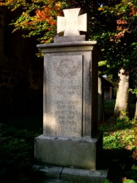 Denkmal 1. Weltkrieg. Stele gekrönt von einem Eisernen Kreuz, mit später beigestellter Gedenktafel
