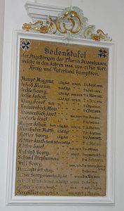 Gedenkstätte auf dem Friedhof Gedenktafel in der Kirche