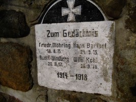 Denkmal 1. Weltkrieg, Pyramide aus gemauerten Feldsteinen mit eingelassener Tafel, auf der Rückseite