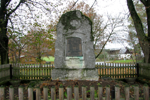 Der verwitterte Naturstein steht in der Ortsmitte. Die Inschrift ist auf einer Metalltafel verzeichnet. Darunter sind die Namen in den Stein eingemeißelt.