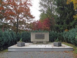Steindenkmal mit metallener Inschriftenplatte ohne Namen am Ortsfriedhof