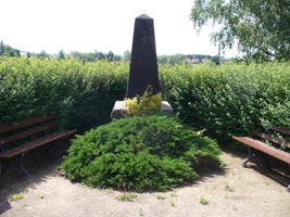 Sich nach oben verjüngende Stele mit einen Ehrenkreuz an der Frontseite. Das Denkmal steht am Ortsrand unweit der Elbe.