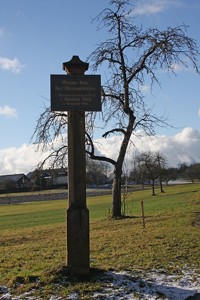 Dürrenmettstetten (7. württ. Landwehrregt. 125), Stadt Sulz am Neckar, Landkreis Rottweil, Baden-WürttembergPLZ 72172 An der Strasse zum Friedhof eine Tafel an einer Betonsäule