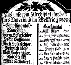 Namen der Gefallenen: