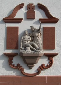 An der Außenwand der katholischen Kirche St. Bartholomäus befindet sich ein Ehrenmal für die Gefallenen des Ersten Weltkriegs, bestehend aus mehreren Teilen: Das Denkmal enthält oben ein Sandstein-Ehrenkreuz, darunter drei beschrifteten Tafeln und ein Sockel aus Sandstein mit Inschrift. Darauf steht eine weiße, steinerne Pieta, die eine weibliche Figur mit einem sterbenden Soldaten darstellt. Rechts und links sind auf zwei der Sandsteintafeln die Namen und Todesdaten der Gefallenen eingemeißelt.
