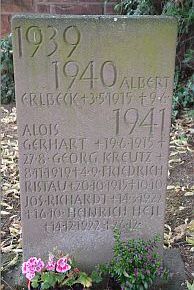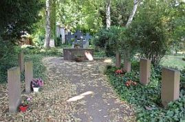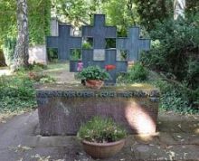 Gefallene aus der Familie erinnert. Am anderen Ende des Friedhofs befindet sich neben der Trauerhalle die