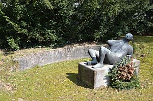 In einer Grünanlage neben dem Friedhof zwischen der Straße Niedereschbacher Stadtweg und Am Entenpfuhl befindet sich ein Mahnmal für beide Weltkriege. Das Denkmal besteht aus einer halbrunden Betonmauer mit Schriftzug, vor der auf einem steinernen Sockel eine abstrakt gestaltete, nackte Bronze-Skulptur liegt. (Kein Hinweis zum Datum und Namen des Künstlers).