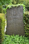 Großer Grabstein mit Inschrift: „Ein Sohn des Volkes“ Rest nicht mehr lesbar.