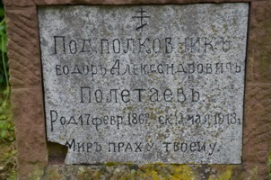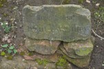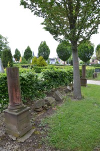 anderen Stelle des Friedhofs. Die Inschriften sind durch Beschädigungen und Verwitterungen der Steine