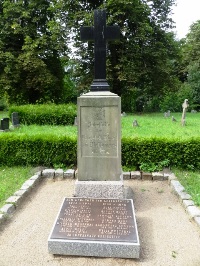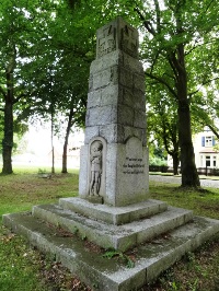 Neben dem Friedhof steht das Ehrenmal zum Gedenken an die Opfer des ersten Weltkrieges. Die Steinsäule zieren Eiserne Kreuze und ein Soldatenrelief.