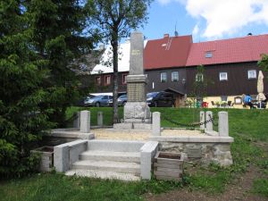 Das Denkmal steht im Zentrum der Stadt Gottesgab, die heute Boží Dar heißt, und wurde dem Aussehen nach erst kürzlich restauriert. Es steht auf einem Unterbau, welcher mit Pfosten umzäunt ist und eine Zugangstreppe hat. Das Denkmal in Form eines Obelisken ist aus Granit mit goldener Schrift. Die Namen stehen auf schwarzen Granittafeln an den vier Seiten.