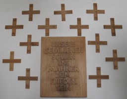 Vermißten ein kleines Holzkreuz angebracht. Ein Holzkreuz ist dem Unbekannten Soldaten gewidmet. Es