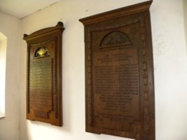 Auf dem Kirchhof ein namenloser Gedenkstein mit den Jahreszahlen 1870-1871 / 1914-1918 / 1939-1945 sowie eine Plakette zum Gedenken an 1813. In der Kirche zwei hölzerne Gedenktafeln mit den Namen der 27 und 28 Kriegstoten beider Weltkriege.