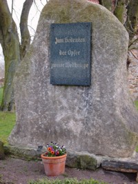 Allgemeines Denkmal für Kriegsopfer, aufgerichteter Findling; Metallnamenstafel an der