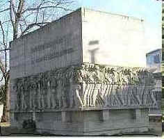 errichtet. Rechteckiger Klotz mit rundherum marschierenden Soldaten