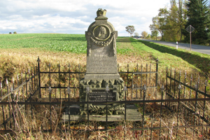 Das Denkmal befindet sich am Ortseingang von Hattorf. Der obere Teil trägt das Konterfei von