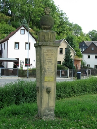 Steindenkmal mit gravierten Inschriften im Ortskern