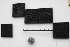 Gedenktafeln an der Kirche (1. u. 2. Weltkrieg). An anderer Stelle an der Kirche Denkmal aus Stein