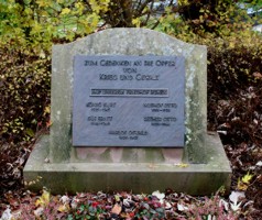 Im Eingangsbereich des Friedhofs von der Stockwiesenstraße her: Bronzetafel auf Steinsockel zum Gedenken an fünf Opfer von Krieg und Gewalt, die auf diesem Friedhof ruhen. Von diesen sind vier auch auf dem Kriegerdenkmal der Gemeinde verzeichnet.