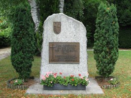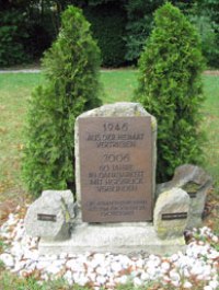 In einem Park stehen zwei Gedenksteine der Vertriebenen, die hier ihre neue Heimat gefunden haben