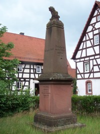 Im Garten der evangelischen Kirche von Hinterweidenthal befindet sich ein Denkmal zur Erinnerung an drei