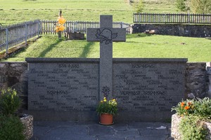 Im Friedhof; Gedenkwand und Kreuz; zusätzliche Hinweise zu Soldaten von privaten Gedenksteinen