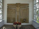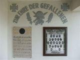 Denkmal in der Kirchturmbasis der Pfarrkirche und Gedenktafeln auf dem Friedhof am Eingang zum Leichenhaus