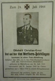 Quelle der Namen der Gefallenen des 2. Weltkriegs, Ortseinwohnerin und Totenbild Ottobald von Werthern.