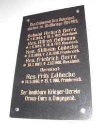 fürs Vaterland starben im Weltkriege 1914 – 1919 (Namen) Der dankbare Krieger-Verein Gross-Garz und