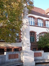 Vor dem alten Schulhaus „An der Pforte“ steht ein Denkmal zur Erinnerung an die Kriege von 1866 und 1870-71. Auf einer weißen, mit sechs Blumen-Kränzen geschmückten Kalksteinsäule sind auf der Vorderseite die Jahreszahlen der Kriege geschrieben. Oben thront ein sitzender Adler auf der Säule. Dahinter auf einer Mauer mit Steinbank befinden sich rechts und links je eine Tafel mit den Kriegsteilnehmern und ihren Einheiten.