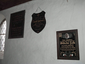 Gedenktafeln in der Kirche Klein Ballerstedt. Gedenktafel 2. Weltkrieg in der Kirche Ballerstedt. Ehrenliste für die Gefallenen des 1. Weltkriegs