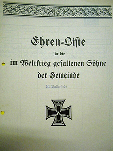 Ehren-Liste für die im Weltkrieg gefallenen Söhne der Gemeinde Klein Ballerstedt