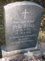 Soldatengrab: Hier ruht Fritz Ballas (Daten) Du bleibst uns unvergessen. Du warst ein Opfer des Krieges