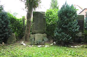 Das Denkmal befindet sich auf dem alten Friedhof, versteckt in einem Wäldchen, schräg gegenüber dem neuen Friedhof
