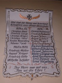 Gedenktafel in der Kirche, mit Kriegsteilnehmern und Gefallenen von 1813 - 1945
