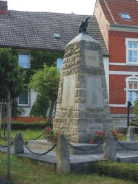 Obelisk mit Adler auf der Spitze – eine Tafel mit Namen der Gefallenen des I. Weltkrieges – drei Tafeln mit