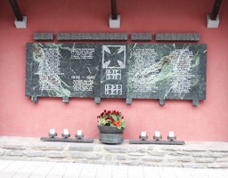 Gedenktafel aussen an der Kirche; zusätzlich Hinweise zu Soldaten von privaten Gedenksteinen