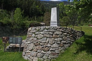 Hinweistafel: Das Freiheitskämpferdenkmal Am 8. August 1809 gelang es den Tiroler Freiheitskämpfern, die Klause gegen eine zwanzigfache Übermacht der Franzosen und Italiener zu verteidigen. Unter den Schützenkommandanten Steger, Hauger, Weber, Achammer und Hibler wurde ein weiteres Vordringen der napoleonischen Truppen in das Pustertal verhindert. Die Gedenksäule wurde 1907 in der Klause aufgestellt und im Jahre 1934 an diese Stelle versetzt. Der Student Karl Tritscher aus Freiburg in Breisgau nahm an der Seite der Tiroler an den Kämpfen um die Lienzer Klause teil und beschreibt in seinem Tagebuch den Einsatz von Hauger: „...Da reißt er das Kruzifix von der Wand und, es hoch emporhalten, ruft er ihnen zu: ‚Wer ein echter Christ, wer ein braver Tiroler ist, der folge mir nach, zur Verteidigung der heiligen Religion, zur Verteidigung des Vaterlandes.´ Und die Macht des Glaubens und die Liebe zum Vaterlande zaubern hinweg Schrecken, dem sie verfallen. Sie erheben sich begeistert, ergreifen die Waffen und folgen jauchzend dem mutigen Jüngling. Sie stürzen hinab und, einer Lawine gleich, auf ihrem Wege durch allseits herbeieilende Mannen sich mehrend, wächst das Häuflein an zur kräftigen Waffe.“