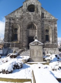 Das Ehrenmal steht vor der Kirche in Lelm. Die Opfer des Ersten Weltkrieges stehen auf zwei Namentafeln an