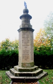 Das Denkmal für die Opfer des 1. Weltkriegs besteht aus einer sechseckigen Sandsteinsäule mit darauf einer