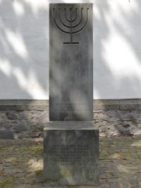 Lich (Stadtkirche), Jüdische NS-Opfer, Landkreis Gießen, HessenPLZ 35423 Neben der Stadtkirche befindet sich das Denkmal für die NS-Opfer von Lich. Es besteht aus einer zweiteiligen Stele mit einer Menora und darunter zwei Schriftzüge.