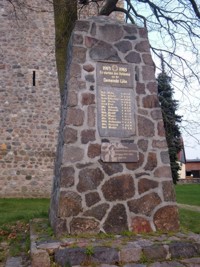 Denkmal 1. Weltkrieg in Form einer stumpfen Feldstein Pyramide mit eingelassener Namenstafel und